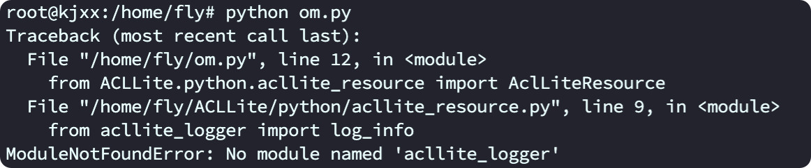 安裝以后運(yùn)行代碼,會(huì)提示ACLLite項(xiàng)目里找不到包,實(shí)際是導(dǎo)包路徑問(wèn)題,進(jìn)入項(xiàng)目找到對(duì)應(yīng)文件改一下路徑就可以
