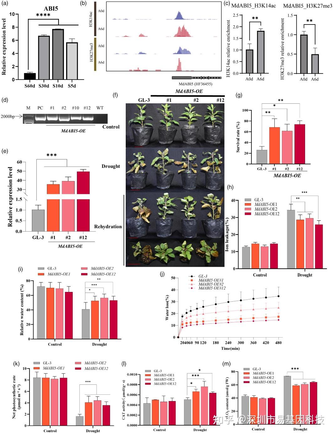 (5)組蛋白修飾調控的MdABI5正向調控蘋果抗旱性