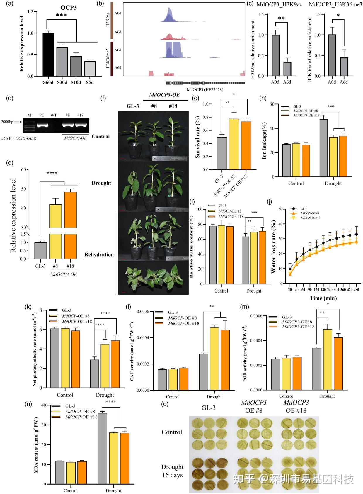 (6)組蛋白修飾調控的MdOCP3正向調控蘋果抗旱性