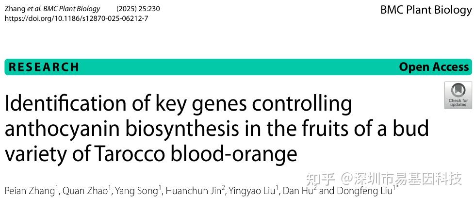Zhang, P., Zhao, Q., Song, Y. et al. Identification of key genes controlling anthocyanin biosynthesis in the fruits of a bud variety of Tarocco blood-orange. BMC Plant Biol 25, 230 (2025). Doi:0.1186/s12870-025-06212-7.