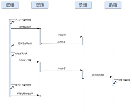 宿主應用進入一個可以分享的界面,比如打開或者選中的一個文件、一條備忘錄、一個聯系人詳情,或個人熱點/WIFI等。