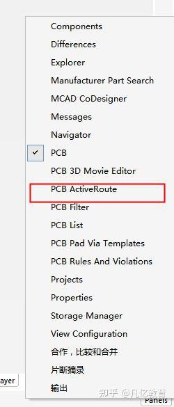 3、建立好規(guī)則之后,就需要繪制DDR的走線。在PCB界面的右下角中的“Panels”中選擇“PCB ActiveRoute”選項(xiàng),如圖3所示。