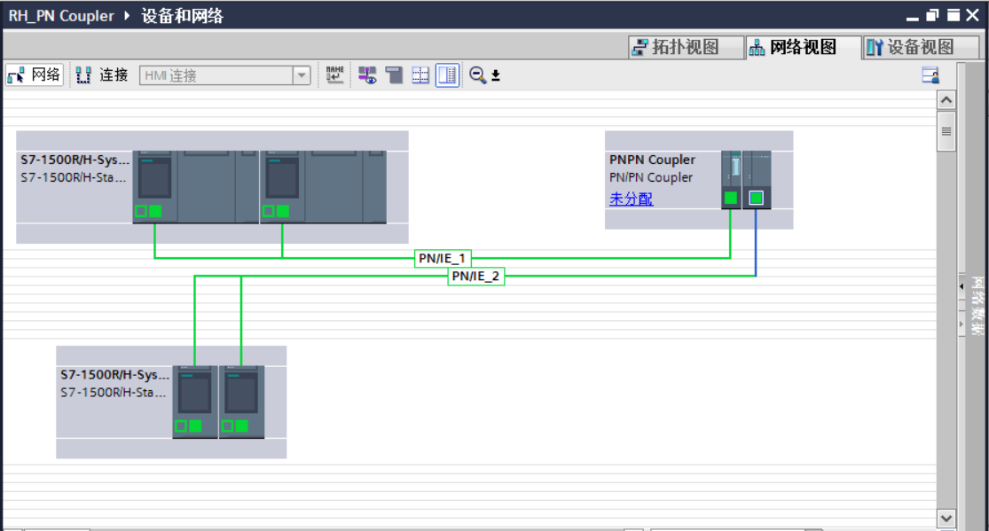 (2).將PN/PN Coupler的兩個網口X1/X2分別接入PN/IE_1和PN/IE_2。