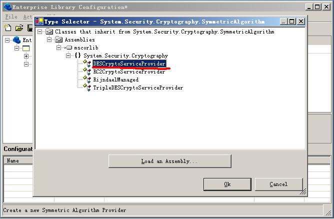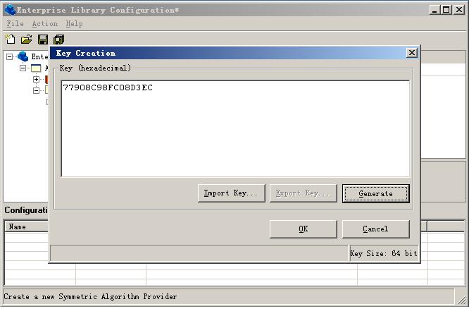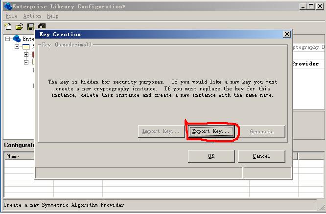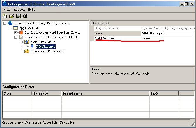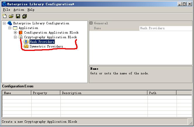 我們看到,創建一個Cryptography Application Block后,默認的有兩個Provider:Hash Provider和Sysmmetric Provider。