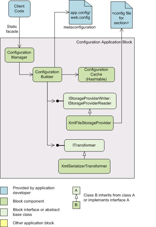 IStorageProviderReader 接口定義了用于從存儲(chǔ)位置讀取配置信息的接口。IStorageProviderWriter 接口實(shí)現(xiàn)了 IStorageProviderReader 接口,還定義了用于寫(xiě)入配置信息的接口。配置應(yīng)用程序塊包含一個(gè)支持該接口的提供程序 XmlFileStorageProvider,它在一個(gè) XML 文件中讀/寫(xiě)配置數(shù)據(jù)。