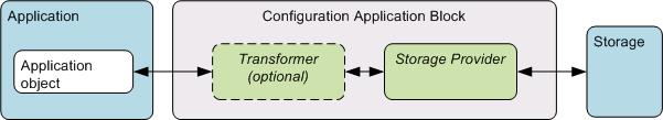 配置應(yīng)用程序塊為應(yīng)用系統(tǒng)提供了一個(gè)通用的配置管理解決方案,可以方便的從各種存儲(chǔ)中讀取配置信息。在設(shè)計(jì)上旨在提供一個(gè)用于讀/寫(xiě)配置數(shù)據(jù)的簡(jiǎn)單接口,實(shí)現(xiàn)配置數(shù)據(jù)的讀寫(xiě)與數(shù)據(jù)的存儲(chǔ)相分離。使用Storage Provider 和 Transformers在應(yīng)用和物理存儲(chǔ)之間傳遞數(shù)據(jù),同時(shí)采用抽象AbstractFactory模式生成Provider數(shù)據(jù)。先解釋一下配置應(yīng)用程序塊中用到的兩個(gè)重要的概念: