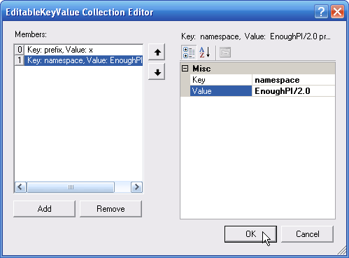 Key = namespace, Value = EnoughPI/2.0