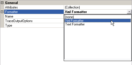 7.選擇Logging Application Block | Trace Listeners | Custom TraceListener節(jié)點,并設(shè)置屬性Formatter為Xml Formatter。