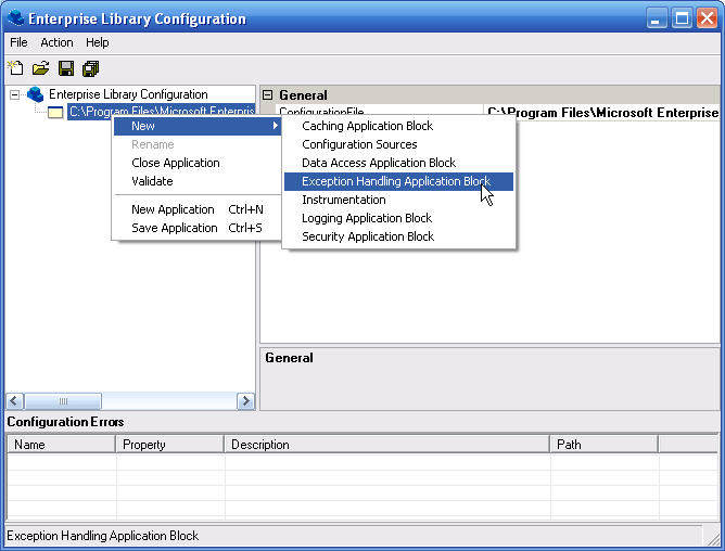 1.右擊應用程序并選擇New | Exception Handling Application Block。