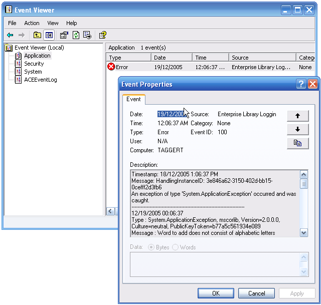 通過本練習,將會在一個沒有異常處理的應用程序中使用異常處理應用程序塊添加本地和全局的異常處理,并記錄到Windows事件日志中。
