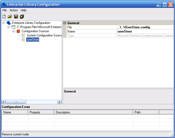 2.應用程序已經定義了兩個Configuration Sources,應用程序使用Enterprise Library的包裝類來管理UserStore.config的位置和內容。