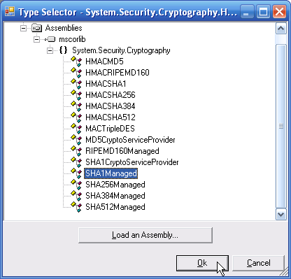 5.Type Selector對話框將會顯示出來,選擇SHA1Managed并單擊OK按鈕。
