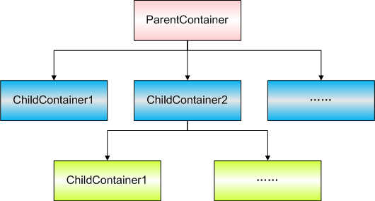 采用層級容器的好處是我們可以對于有不同生命周期的對象放在不同的容器中,如果一個子容器被釋放,不會影響到其它子容器中的對象,但是如果根節點處父容器釋放后,所有的子容器都將被釋放。