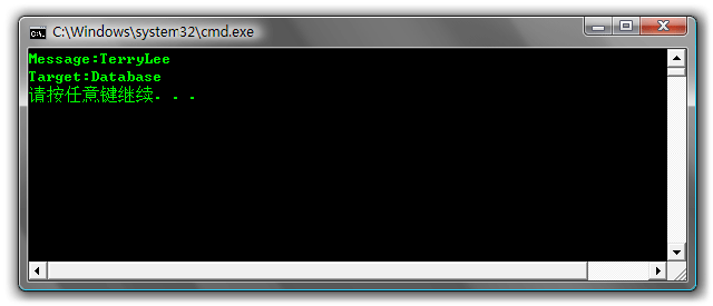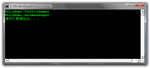 在上面代碼中,我們在容器中注冊了一個ILogger接口到FlatFileLogger的映射,當調用Get<ILogger>()方法時,將返回ILogger的一個默認的類型實例。運行代碼可以看到: