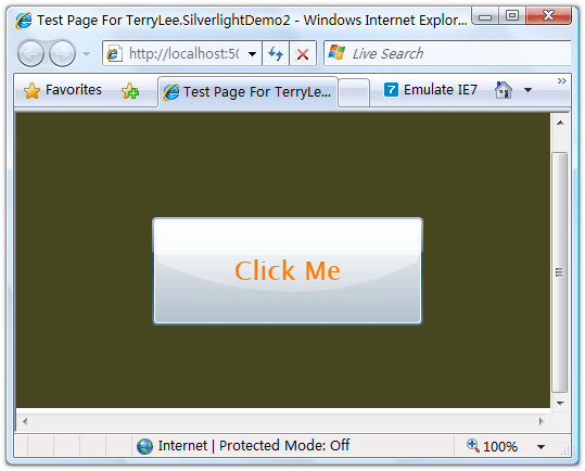 <asp:Silverlight ID="Xaml1" runat="server" Source="~/ClientBin/TerryLee.SilverlightDemo2.xap" Version="2.0" Width="100%" Height="100%" />