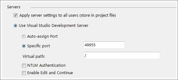 注意大家可以在Web Application Project的屬性頁中,把ASP.NET Development Server的端口號設置為一個固定的端口號: