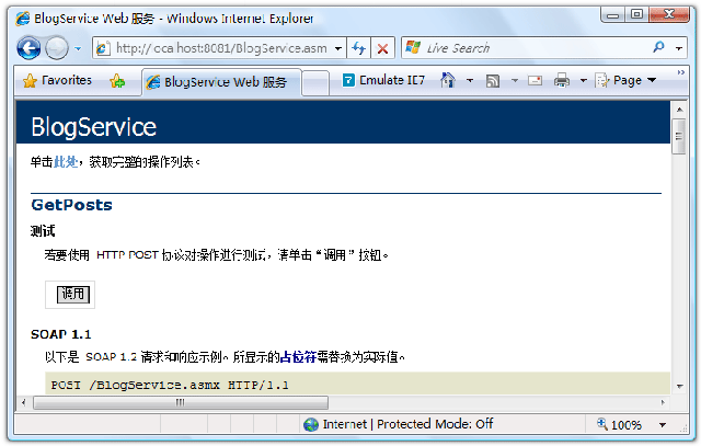 public class BlogService : WebService { [WebMethod] public Post[] GetPosts() { List<Post> posts = new List<Post>() { new Post{ Id=1, Title="一步一步學Silverlight 2系列(13):數據與通信之WebRequest", Author="TerryLee" }, new Post{ Id=2, Title="一步一步學Silverlight 2系列(12):數據與通信之WebClient", Author="TerryLee" }, new Post{ Id=3, Title="一步一步學Silverlight 2系列(11):數據綁定", Author="TerryLee" }, new Post{ Id=4, Title="一步一步學Silverlight 2系列(10):使用用戶控件", Author="TerryLee" }, new Post{ Id=5, Title="一步一步學Silverlight 2系列(9):使用控件模板", Author="TerryLee" }, new Post{ Id=6, Title="一步一步學Silverlight 2系列(8):使用樣式封裝控件觀感", Author="TerryLee" } }; return posts.ToArray(); } }