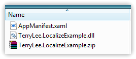 現(xiàn)在編譯成功,可是當(dāng)運(yùn)行時(shí)卻并沒(méi)有出現(xiàn)我們想要的結(jié)果。我們首先會(huì)想到,資源文件編譯后是否下載到了本地,也就是是否打包到了xap文件中,這一點(diǎn)很好證實(shí),我們可以解壓xap文件來(lái)看看,果然不出所料,如下圖所示: