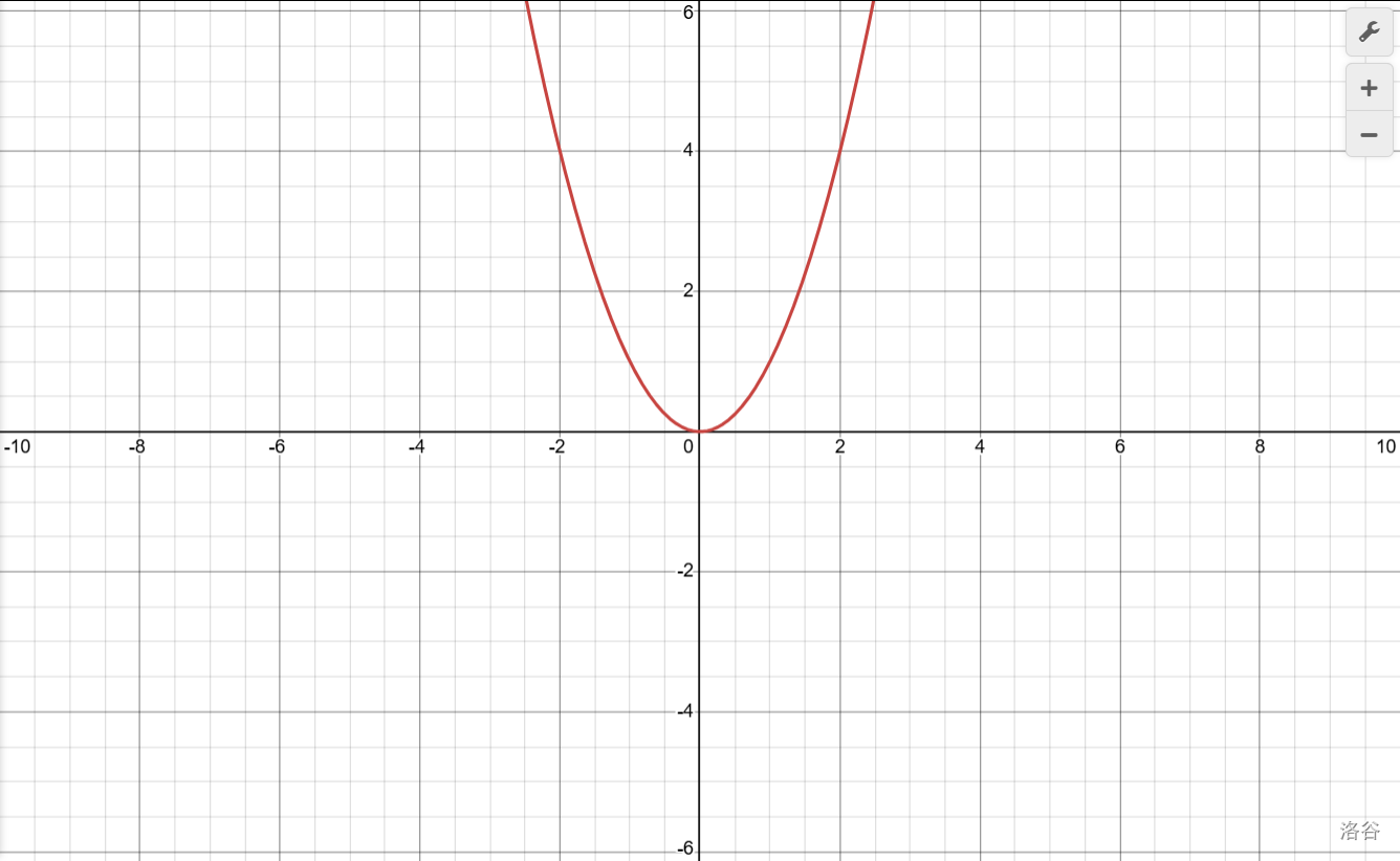 不過,為了降低難度,我決定把定義式\(y=ax^2+bx+c\)先換成特殊情況(\(a=1,b=c=0\)):\(y=x^2\)。