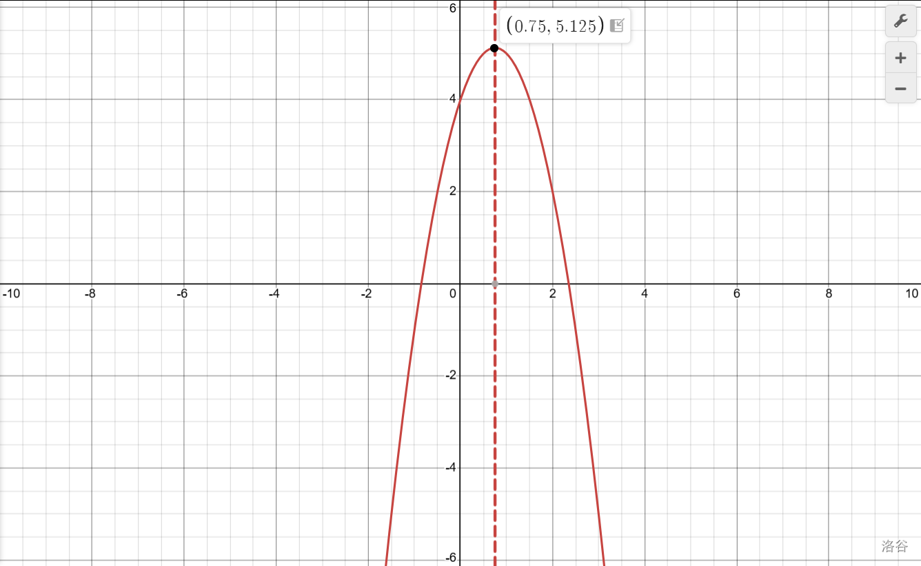 看來有的時候,我們的假設也會出現錯誤,這是不可避免的。驗證或推翻假設的方法除了證明,還有畫圖。通過圖像我們可以直觀看出函數\(y=-2x^2+3x+4\)的增減性與我們最初的猜想不符。