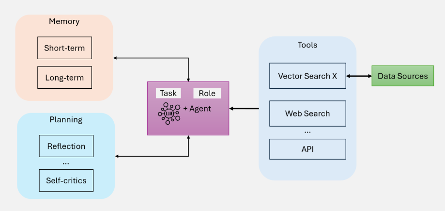 - 工具(向量搜索、網絡搜索、API 等):擴展代理的能力,使其不僅限于文本生成,還能夠訪問外部資源、實時數據或專門的計算