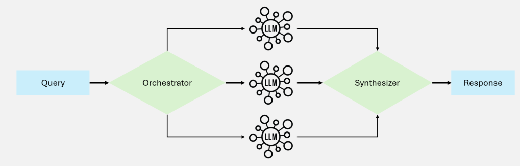 利用中央協調模型動態地將任務分解為子任務,分配給專門的工作模型,并編譯結果。與并行化不同,它能夠適應不同的輸入復雜性。