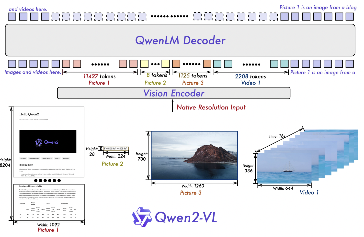 - 分辨率處理:引入“樸素動態分辨率”機制,可將任意分辨率的圖像處理為動態數量的視覺標記,解決了固定分辨率的局限性。
