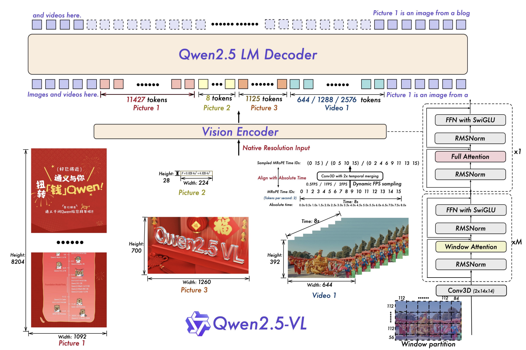 - 視覺編碼器進一步升級,采用從頭訓練的帶有窗口注意力的ViT,架構更緊密地與LLM設計原則對齊,如RMSNorm、SwiGLU等。