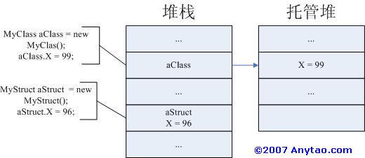 class(類)是面向對象編程的基本概念,是一種自定義數據結構類型,通常包含字段、屬性、方法、屬性、構造函數、索引器、操作符等。因為是基本的概念,所以不必在此詳細描述,讀者可以查詢相關概念了解。我們重點強調的是.NET中,所有的類都最終繼承自System.Object類,因此是一種引用類型,也就是說,new一個類的實例時,對象保存了該實例實際數據的引用地址,而對象的值保存在托管堆(managed heap)中。