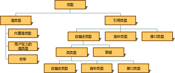 進一步的探討通用類型系統的內容,我們知道CTS支持兩種基本的類型,每種類型又可以細分出其下級子類,可以以下圖來表示: