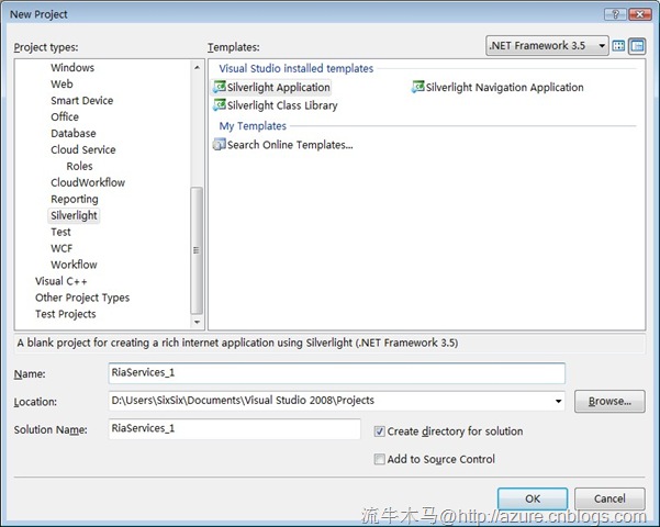 - 在VS2008中新建Silverlight項目