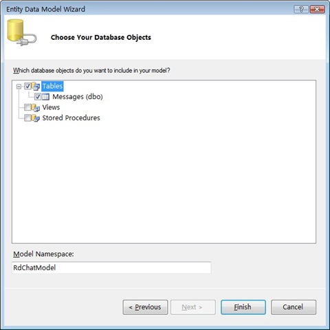 根據提示勾選需要的部分。在本例中,我們選擇了Messages表作為實體,并選擇”Enable editing”,這樣在生成的類中會初始包括Get,Insert,Update,Delete 4個基本的實體操作方法