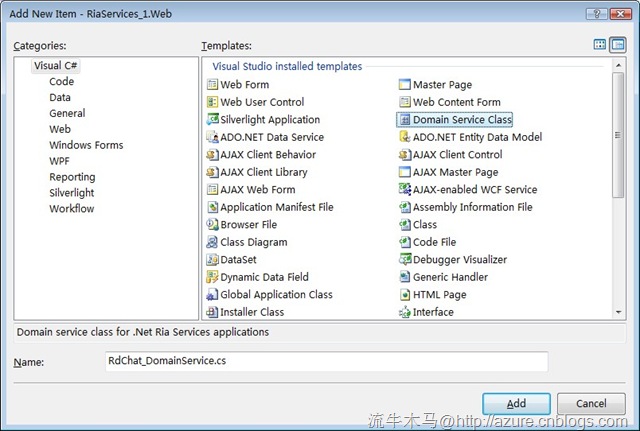 - 再次在Web項目上右擊,新增本文的主角——Domain Service Class