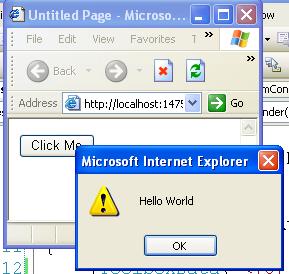 We finally emit an <INPUT> tag of type button and set its OnClick attribute to our JavaScript function name. This way when the user clicks on the button DisplayMsg() function will be called.