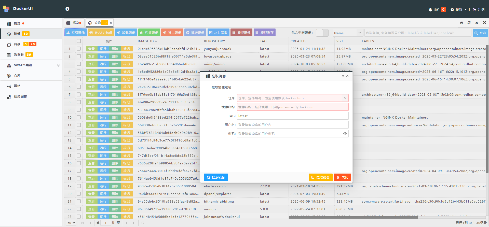 docker.ui 提供基于容器的安裝方式,只需下載鏡像即可完成部署。