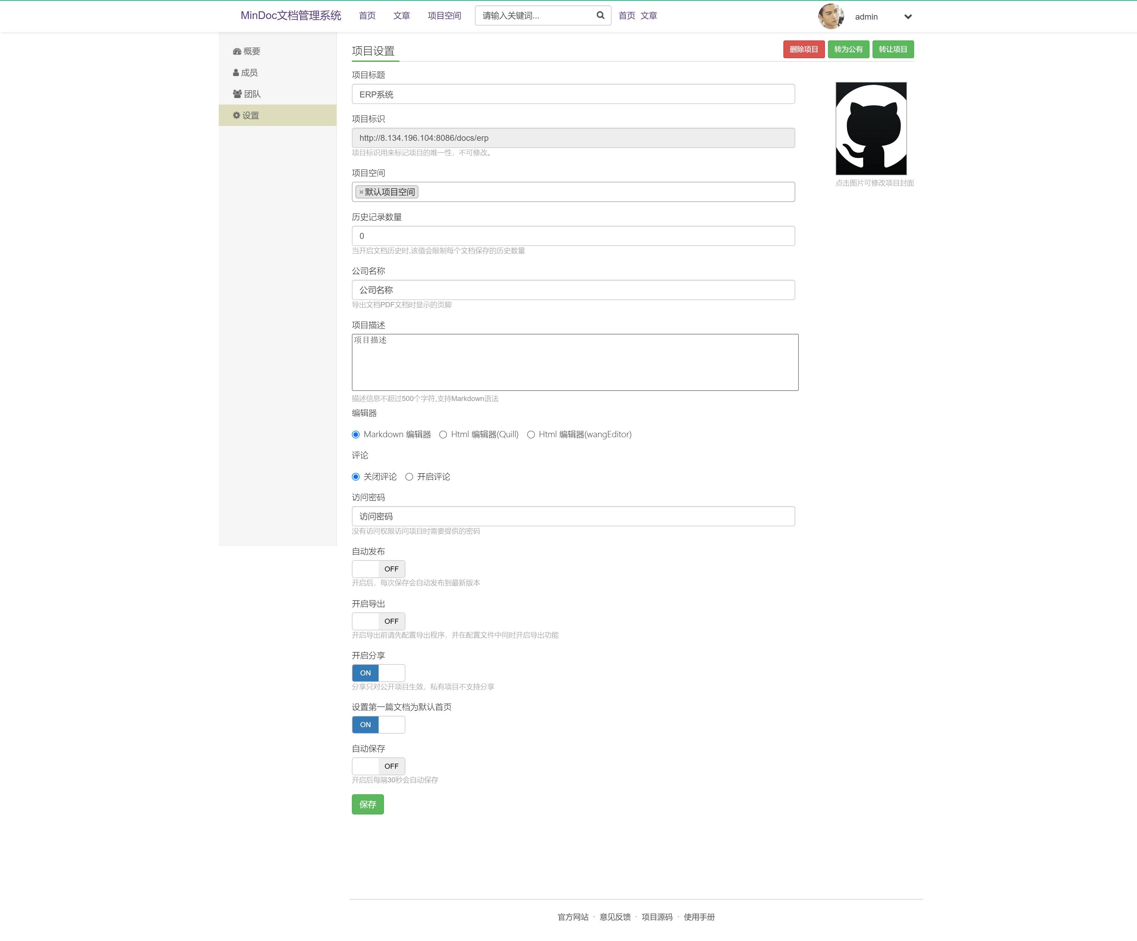 - 性化項目設置:支持配置項目名稱、描述、評論權限、自動發布、下載權限等,適配不同項目需求