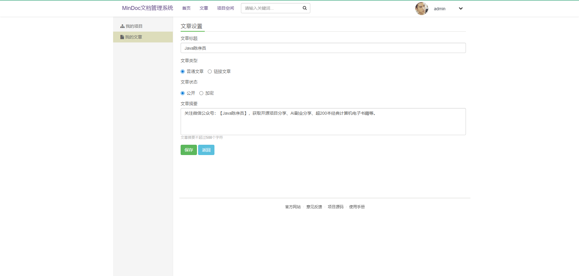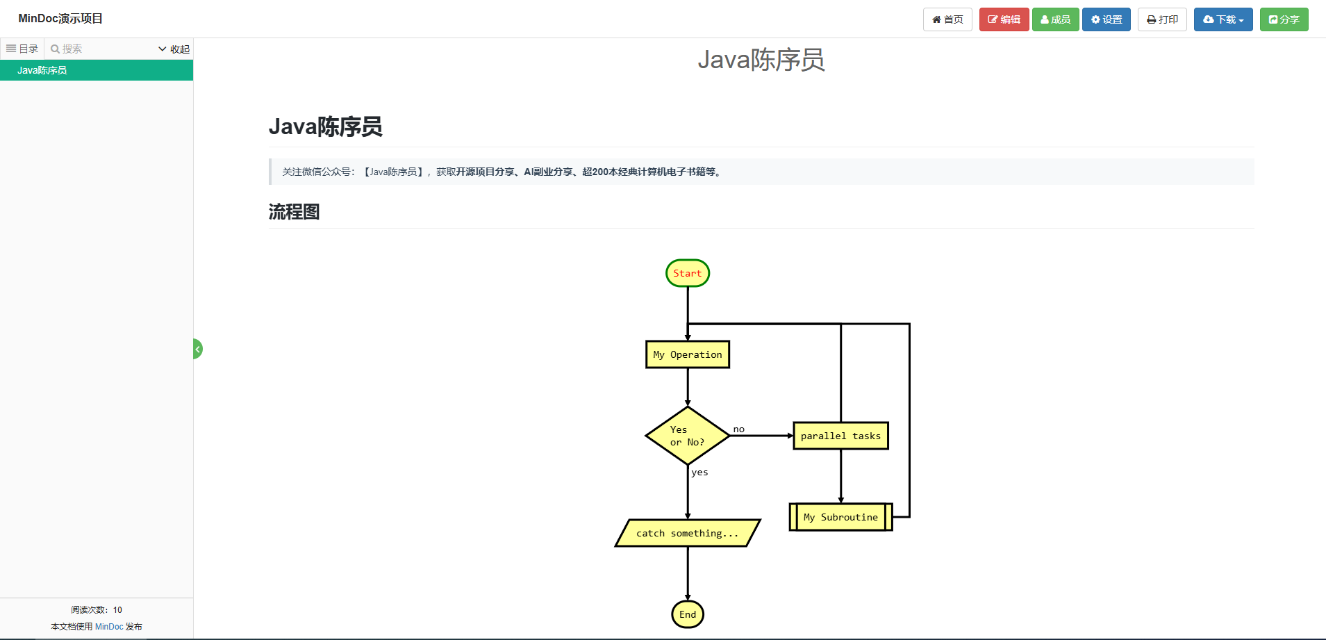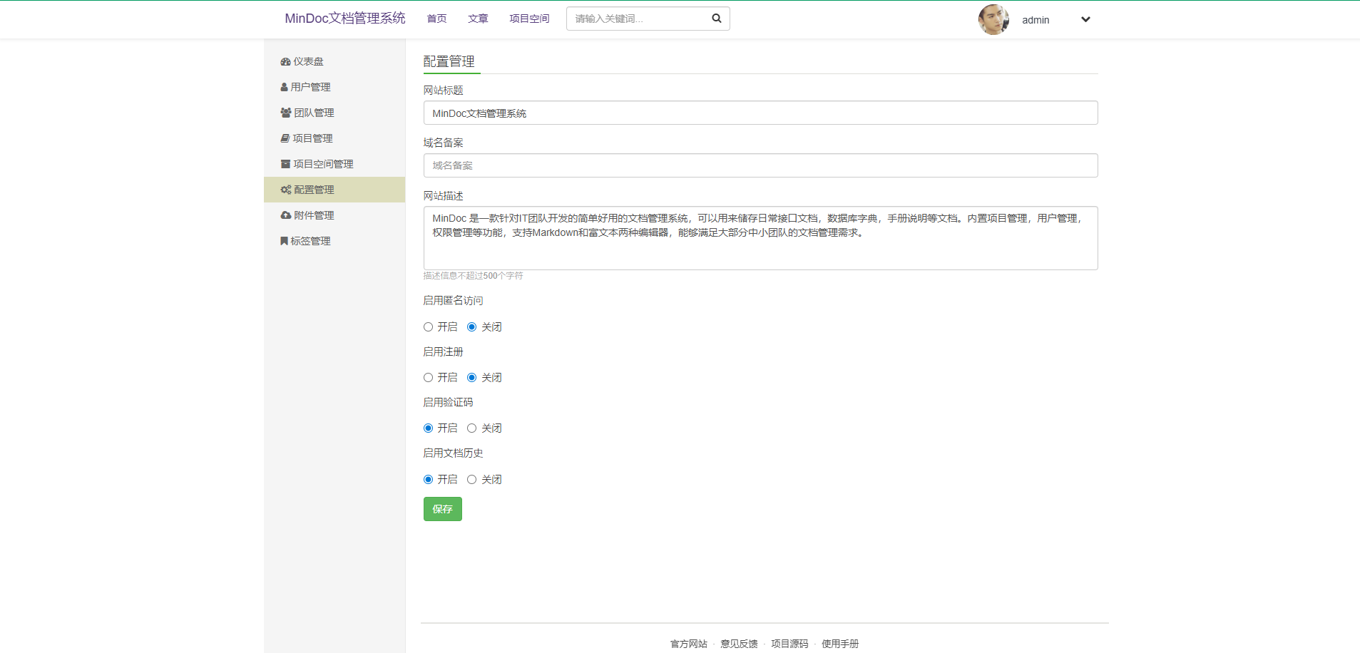 MinDoc —— 一款針對 IT 團隊開發的文檔管理系統,基于 Golang 開發,內置項目管理,用戶管理,權限管理等功能,可以用來儲存日常接口文檔,數據庫字典,手冊說明等文檔。