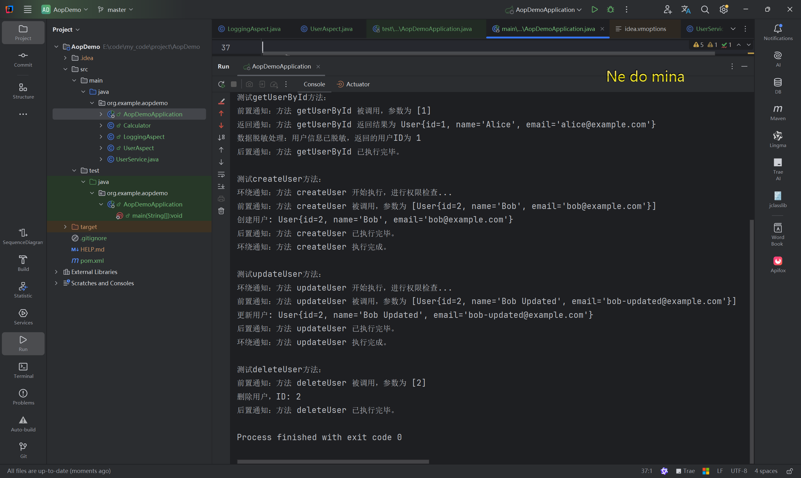 本案例的主要目標是通過兩個不同的業務類(Calculator 和 UserService),展示 AOP 在實際項目中的應用。具體來說,使用 AOP 實現以下功能: