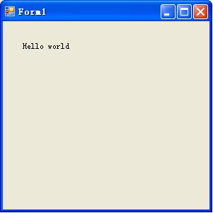 現在我們在Toolbox中選中FirstControl,在form設計器上左鍵點擊,或者按住鼠標拖放。我們制作的控件出現在了Form設計器上,在Form設計器上選中這個控件,然后在屬性瀏覽器中將Text屬性設為Hello World,現在我們的控件上的文字變成了Hello World。接下來我們要運行測試的工程,看看實際的效果。在運行之前,將測試工程設為啟動工程,具體做法是,在solution explorer中右鍵點擊TestControl工程,選擇“Set as Startup Project”。點擊工具欄里的運行按鈕,或者按鍵盤的F5功能鍵。實際效果如下圖所示: