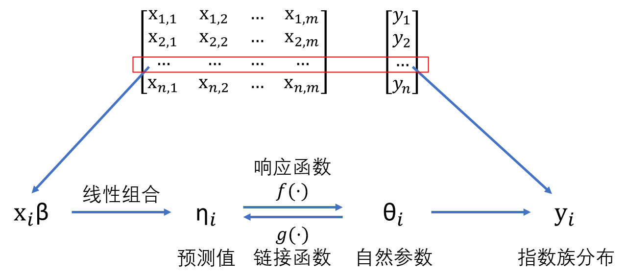 - $ b(\theta)$ 和 $ c(y, \phi)$ 是由具體分布形式決定的函數。