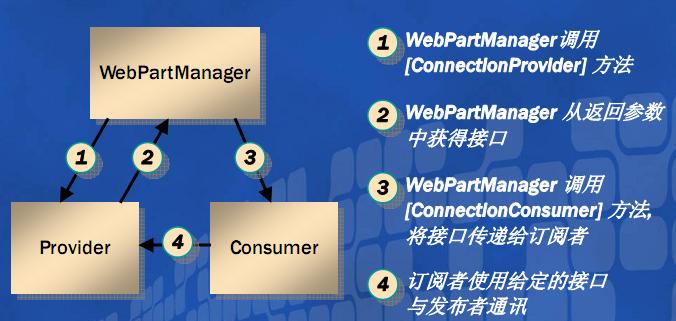 /*通訊提供者,實現方法返回消息接口,并且方法上要運用特性[ConnectionProvider],第二個參數用作在WebPartManager中注冊*/8