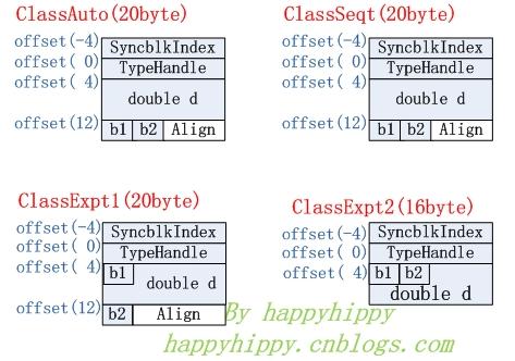 四個對象的實際Layout如下圖所示(根據上面表中的Offset來排的):