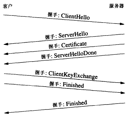 剛才所描述的每一步都需要通過一條或多條握手消息來實現(xiàn)。在此先簡要地描述哪些消息與哪幾步相對應(yīng),然后詳細(xì)描述每條消息的內(nèi)容。下圖描述了各條消息:
