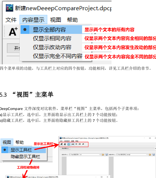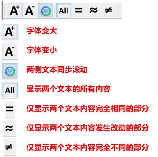 - ??顯示全部?jī)?nèi)容??:同步滾動(dòng)所有內(nèi)容,包括相同、修改和完全不同部分