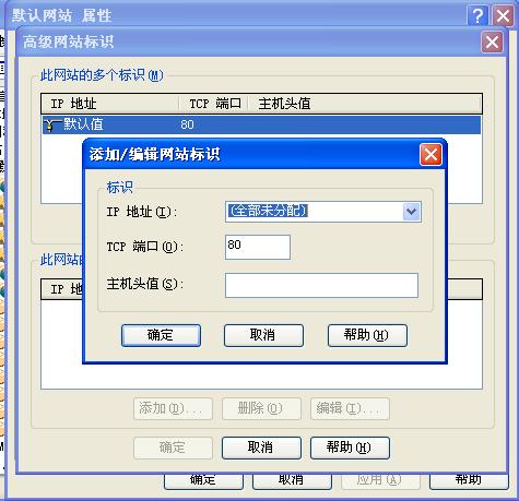 打開IIS,打開網站屬性,在網站選項卡里面的IP地址欄里面如圖: