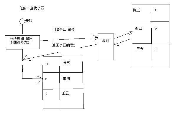 仍以上面的學生為例,假設學號就是規則,老師手上有一個規則表,在排座位的時候也按照這個規則來排序,查找李四,首先該教師會根據規則判斷出,李四的編號為2,就是在座位中的2號位置,直接走過去,“李四,哈哈,你小子,就是在這!”