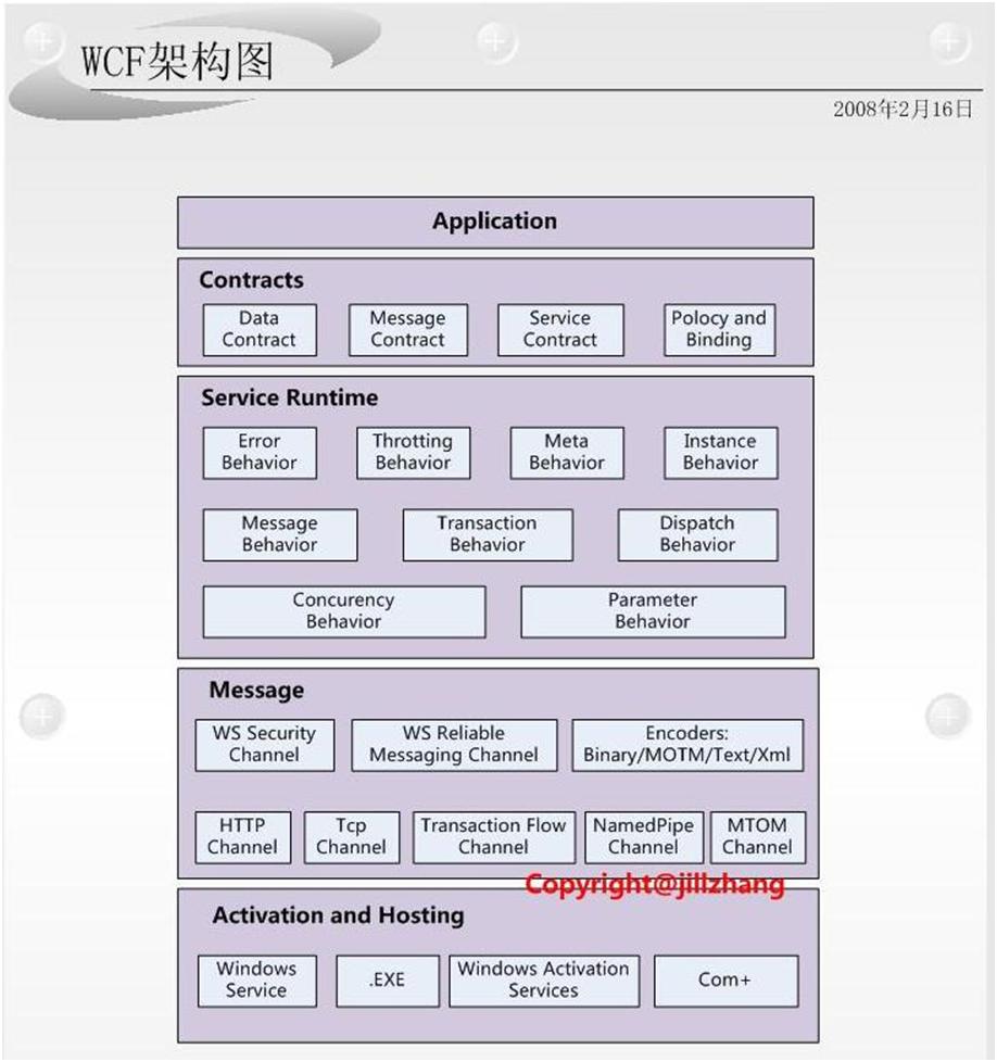前面的幾篇文章,分別介紹了WCF的基本知識和Endpoint的三個重要組成部分:Address,Contract,Binding。但無非管中窺豹而已,本文就闡述一下WCF的架構(gòu),從整體的角度來重新對WCF加深認(rèn)識。