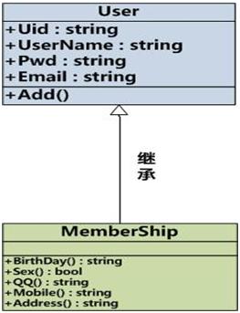 當然我們可以使用兩個不同的SQL,用SqlTransaction來保證事務(wù)性,但MemberShip的Add代碼是不是就有重復的地方呢,這樣的實現(xiàn)看起來怎么也不美觀,因為子類并沒有享受到父類給與的恩賜。那么使用System.Transactions.TransactionScope便可以解決這個問題,我們可以先實現(xiàn)User.Add(),因為MemberShip繼承于User,當實現(xiàn)MemberShip的Add方法時,便可以如下做