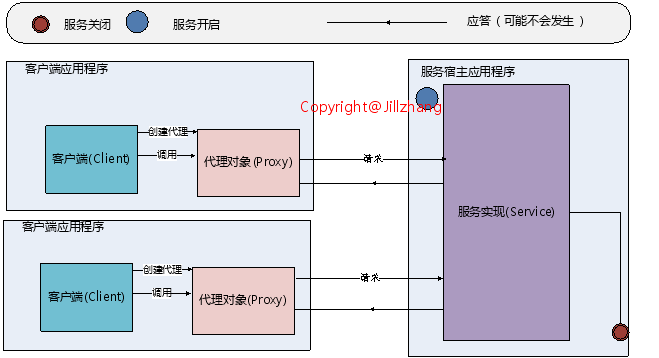 - 宿主程序創建新的服務對象,并執行請求操作,如果有必要,返回客戶端應答