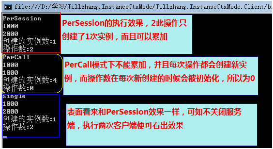 WCF中有三種實例模式,這在.Net Framework中已經用InstanceContextMode枚舉具體的列了出來,它們分別為:PerSession,PerCall,Single